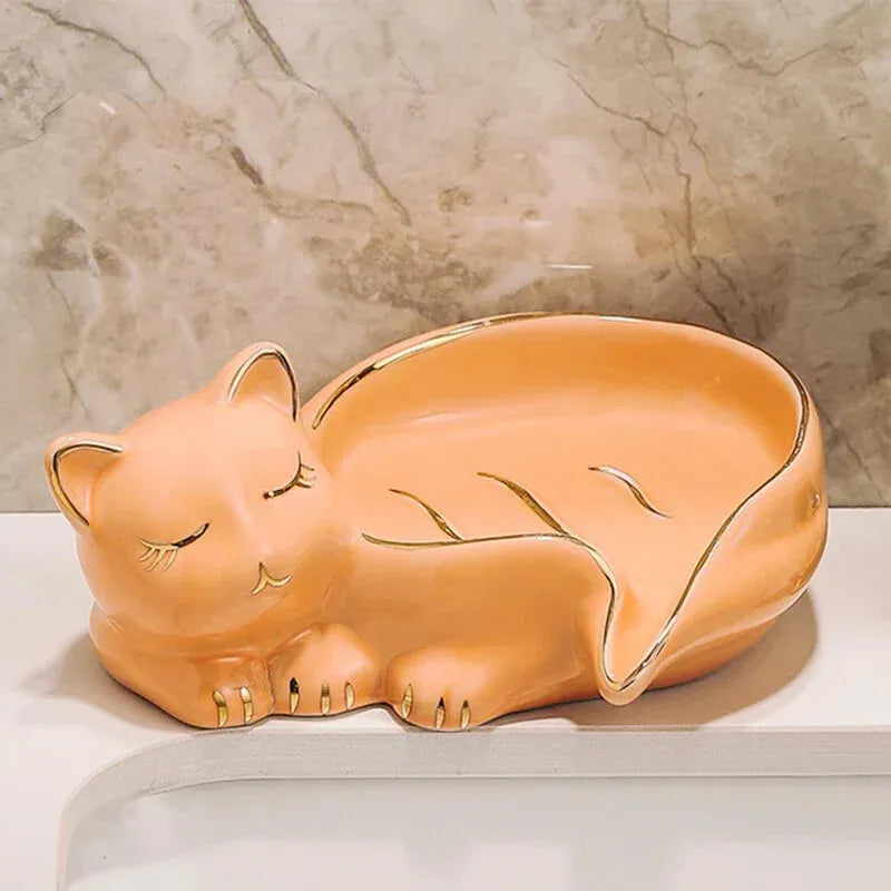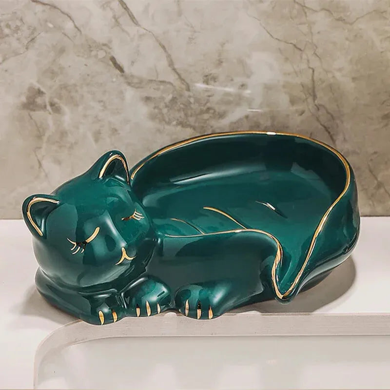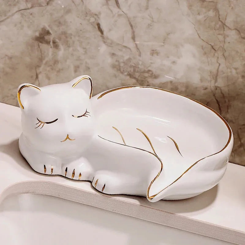 Porte savon chat, pratique, mignon et raffiné pour votre salle de bain.