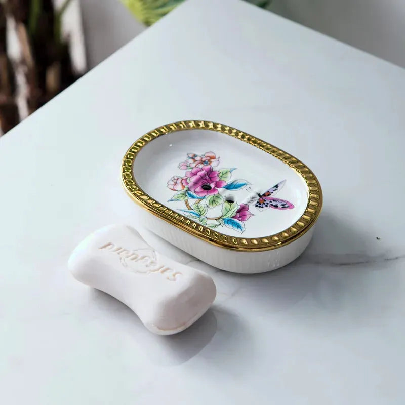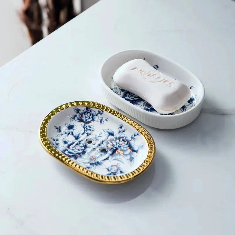 Porte savon au style porcelaine, décoratif et durable pour votre salle de bain.